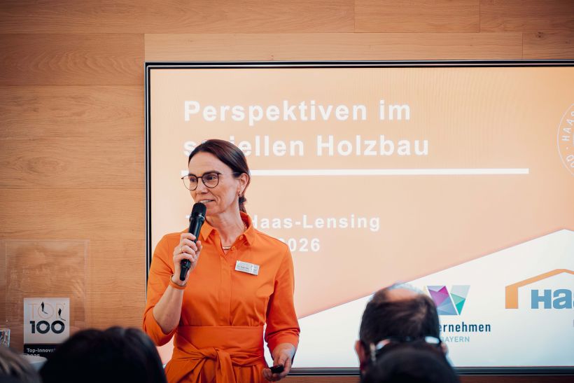 Als Gastgeber gewährte die Haas Fertigbau GmbH den Teilnehmerinnen und Teilnehmern Einblicke in aktuelle Entwicklungen im seriellen Holzbau. Haas-Gesellschafterin Dr. Tanja Haas-Lensing erläuterte, wie sich das Unternehmen im Spannungsfeld zwischen Standardisierung und individuellen Kundenlösungen positioniert.